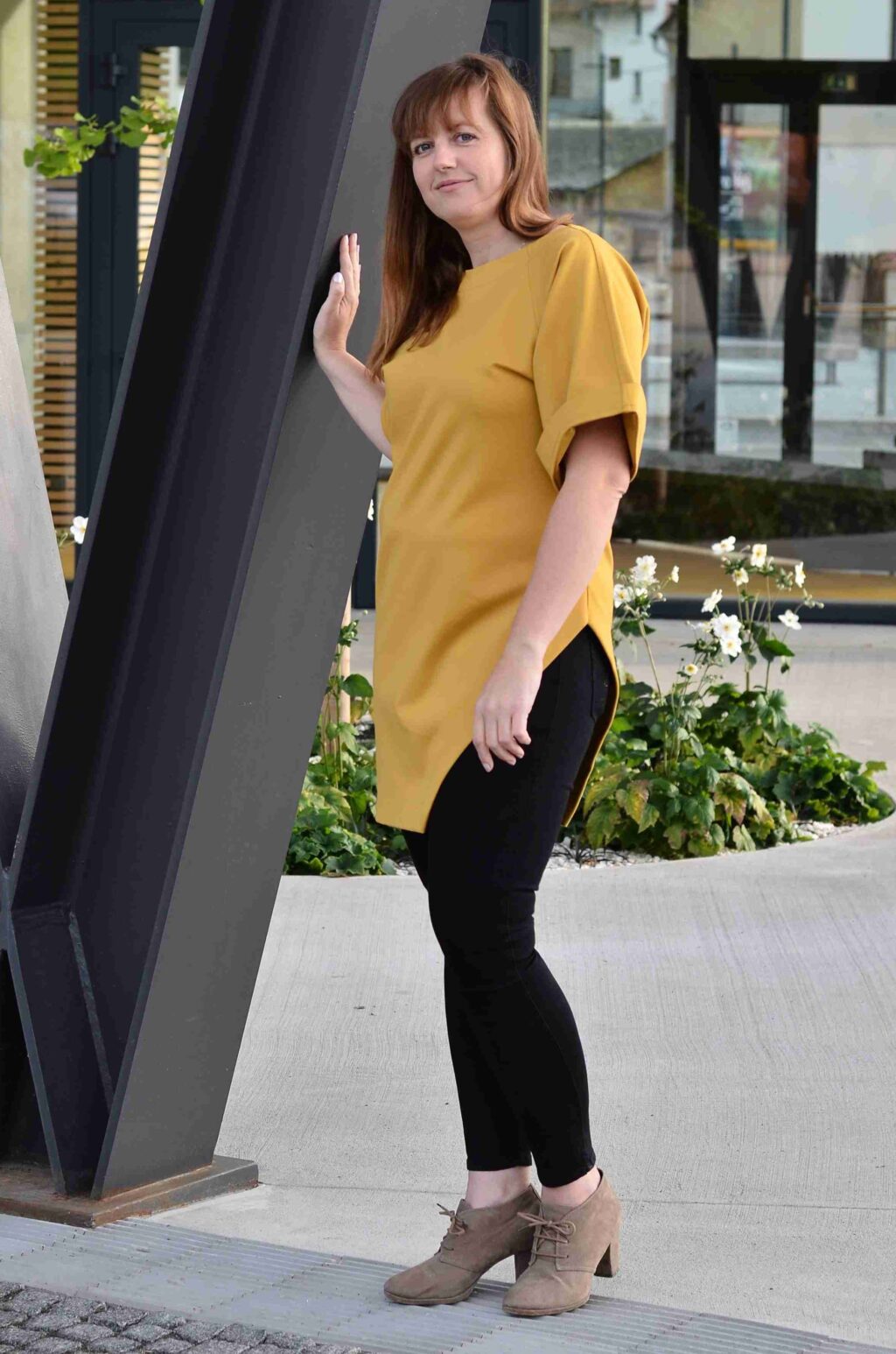 Moderní dámská žlutá tunika z příjemného materiálu vyrobená v naší krejčovské dílně v Podkrkonoší.